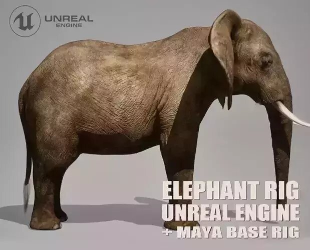 African Elephant RIG UNREAL project Maya base rig 3D model