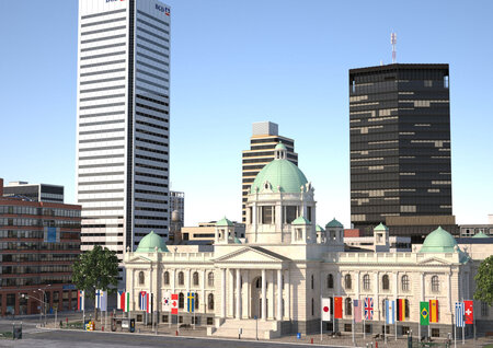 Highly detailed modular city containing detailed buildings, road tiles, street furniture, textures and more.