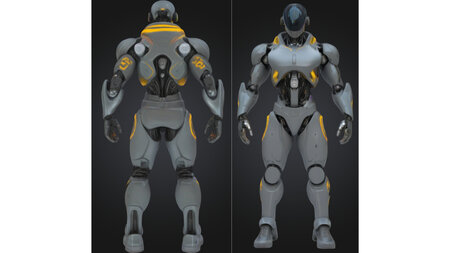 This sleek sci-fi android character features a futuristic humanoid design with glowing amber accents, making it ideal for high-tech or cybernetic environments. Fully textured using a PBR workflow and optimized for real-time applications.