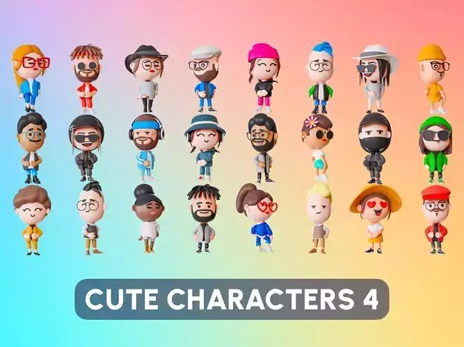 Cute Characters 4 Low-poly 3D model