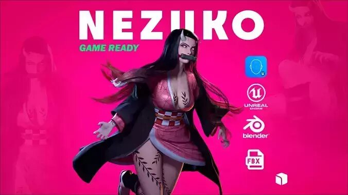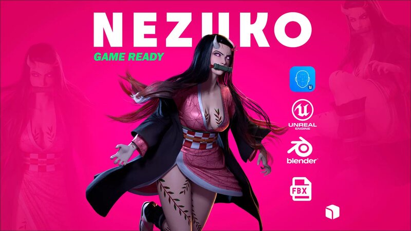 3D model for Blender of Nezuko Kamado based on the characters of the Demon Slayer: Kimetsu no Yaiba series, this design is not intended to be the same as the anime, it is only based on it. This model is a version adapted to my style, and is available only in Blender format, FBX and Unreal 4. The character has Body and Face Rig, and it comes with1 original costumes of the character, and 1 extra costumes (Bikini Suit Version).