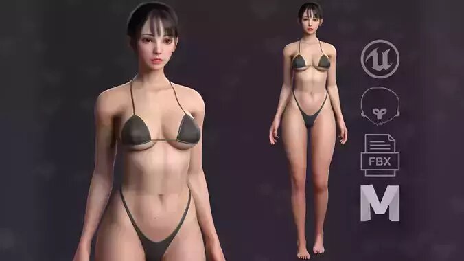 The package includes a complete Unreal Engine 4 project (compatible with all later versions of the engine), a scene set up in Marmoset Toolbag, a project file for Autodesk Maya, and FBX files for use in other 3D software. You have full flexibility to modify the model as you see fit—add clothing, hairstyles, or other custom elements. (Please note that a certain level of proficiency with these tools is required to make such adjustments.)