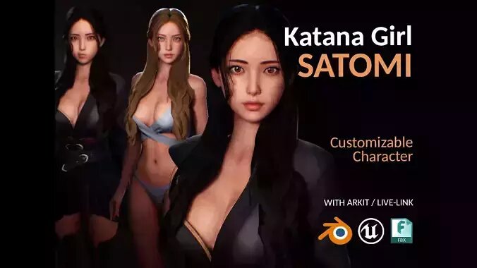 3D model Katana Girl Satomi - F2 - Animated Rigged Game Ready Character VR / AR / low-poly | CGTrader