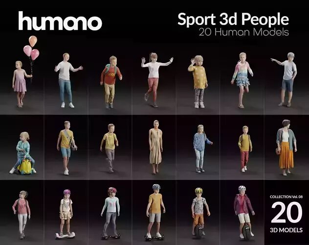 Humano 20-Collection 09 KIDS- PLAYING - 20x 3D models 3D model