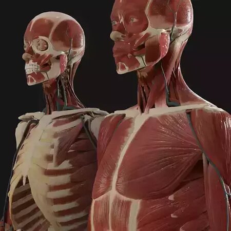 Model of human female muscular system and skeleton. Realistic, high detailed and anatomically correct but slightly simplified representation. Model of the musculature only consists of the main muscles of the human body. PBR textures. Work great with real-time 3d engines. All Textures are 4096x4096. The texture folder contains Albedo, Normal,AO,Roughness File formats= .blend, .FBX