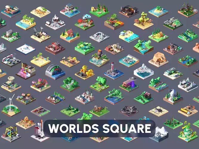 Worlds Square is a massive 3D model pack featuring 100 unique stylized islands, each crafted in a consistent, vibrant art style. With over 6500 assets covering biomes, buildings, props, and landmarks, it offers endless possibilities for creating diverse game worlds, adventure maps, or simulations. Perfect for games, AR/VR, and creative projects.