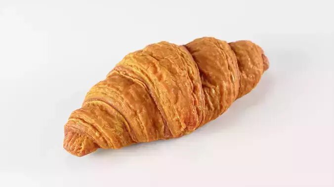 French croissant 3d model in high detail, created via 3d scanning (photogrammetry) and combining hundreds of photos of real objects.