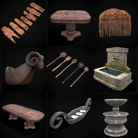 Medieval Props Collection THREE - Models 1000-1478 will be updated to 1500 as they come out - 3D Model Files Include FBX and OBJ. Includes PBR Texture in 4096 x 4096. Maps include : Basecolor, Normal, Roughness, Height, and Metallic. All Preview renders were done Marmoset Toolbag 4. Scaled to real world scale. Customer Service Guaranteed. From the Creators at Get Dead Entertainment. Please like and Rate! Follow us on FaceBook and Instagram to keep updated on all our newest models. Model can be used for any purpose except resale or redistribution of the asset if not used in a game, commercial or media project.