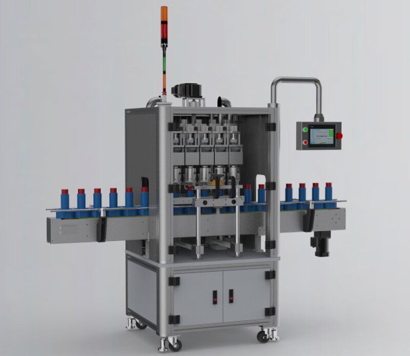 The equipment is in the back end of the production line equipment, which can automatically spin and cover the product, which can be fixed according to the predetermined torque, and the five stations can work together.