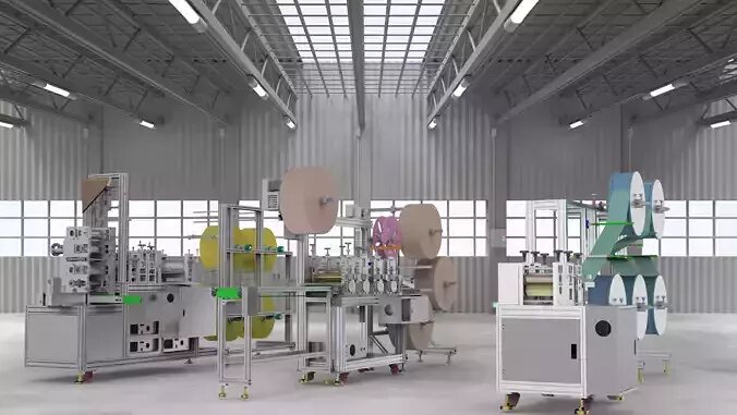 Ear less semi-automatic N95 mask machine Assembly 3D model