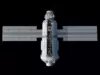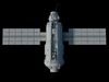 The module has three docking ports: one axially on the front end at the docking sphere, one on the Earth-facing side (nadir) of the docking sphere and one axially on the aft end.