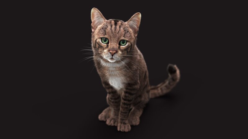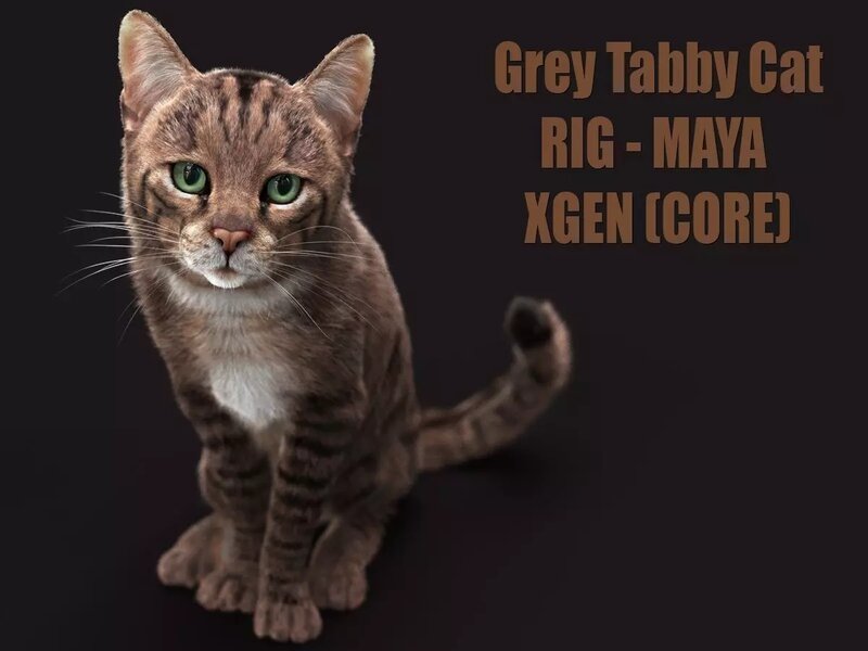 High Detailed Photorealistic Grey Tabby Cat; UVunwrapped and smoothable, made with Maya. X-GEN (CORE) for grooming.